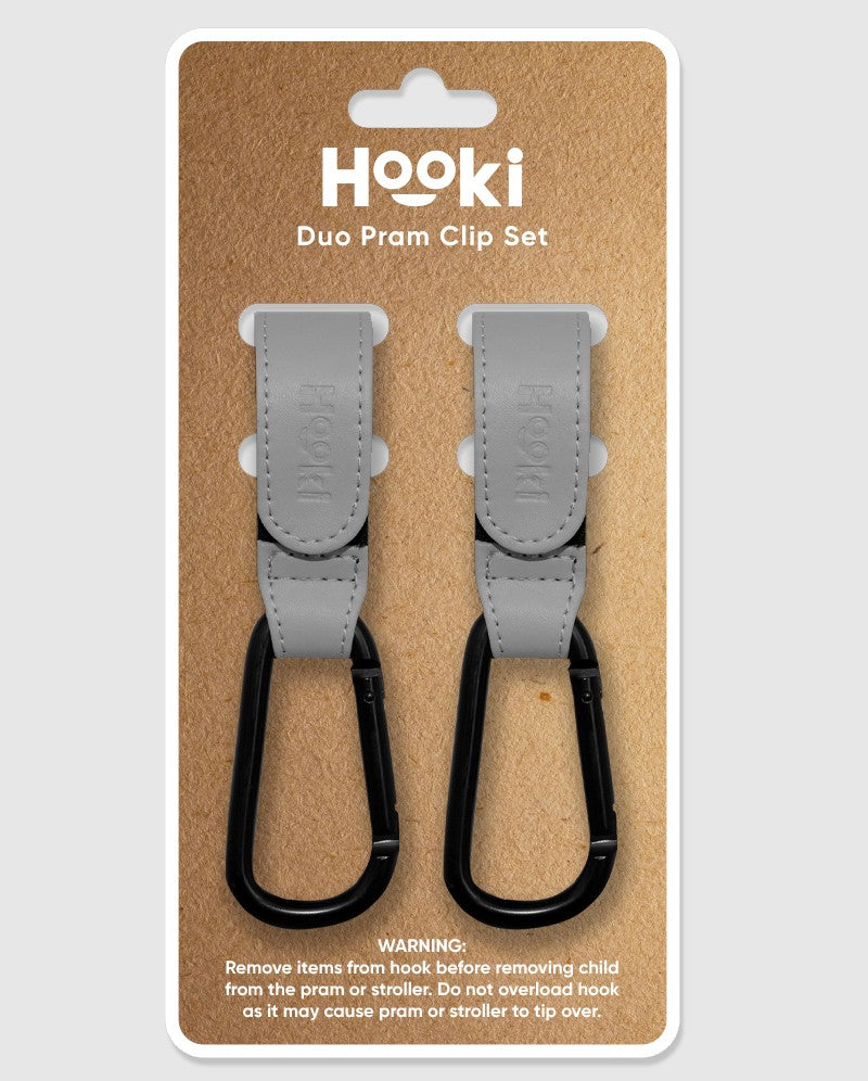 Hooki Pram Hooks are a functional accessory for your pram whilst out and about. Easily attach to any pram's handle using our super strong velcro and gain a much needed extra pair of hands.
