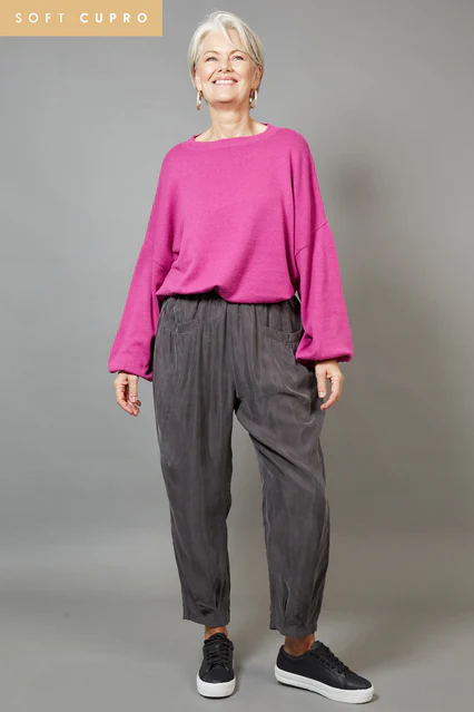 A new take on the everyday trouser, the Vienetta Relaxed Pant is the ultimate off-duty style. This loose-fit pant is crafted from a luxurious cupro and features an elastic waist with a drop crotch in a soft and airy fit. Get winter ready! Pack this essential style in your suitcase for your next winter getaway.