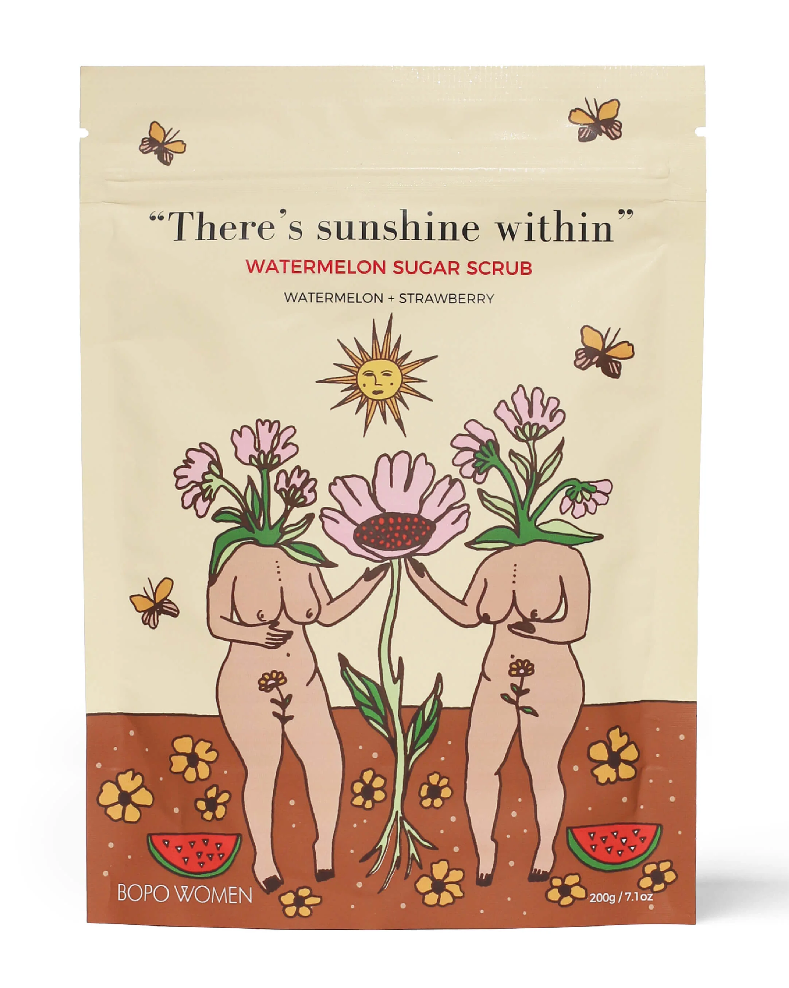 The Watermelon Sugar Scrub is a refreshing nutrient rich super scrub to help you kickstart the day. Skin healing superfoods like watermelon oil, strawberry powder and azuki beans are blended with a soothing natural exfoliant base to leave your body feeling deeply moisturised and smelling like a dream, long after you use it. We've tried all the body scrubs out there - coffee scrubs, sugar scrubs, salt scrubs and everything in between. But none delivered the perfect level of skin exfoliation; some were too soft and others were scratchy and damaged our skin. So we created a unique exfoliating formula that combines sugar, Himalayan sea salt, Pacific sea salt, coconut meal, almond meal and pink clay. We won't tell you it removes stretch marks or makes pigs fly, but if you want silky-soft, smooth and hydrated skin, then this scrub is perfect for you.